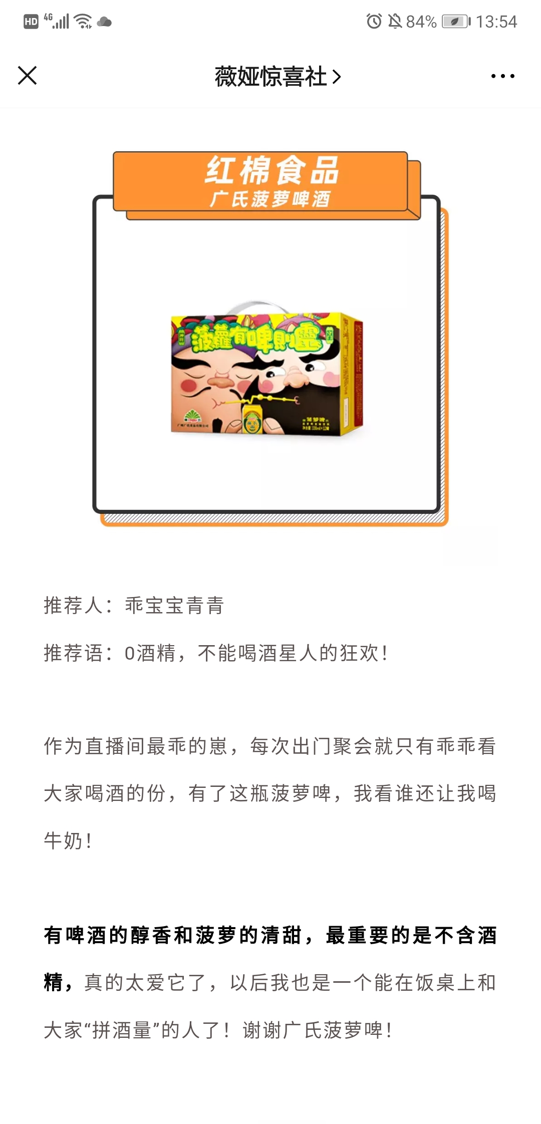 直播当晚,广氏菠萝啤的行业排位也有了质的飞跃,支付金额在行业排名****0!(行业TOP10平均金额384W+);全店的访客数在行业排名NO.8!(行业TOP10平均人数58W+);支付买家数行业排名NO.6!(行业TOP10平均人数4W+)。