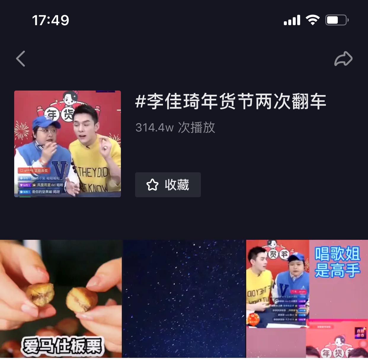 抖音视频覆盖至广州、上海、深圳、合肥、北京、长沙六个城市,引爆两大抖音话题,抖音热搜话题一:#李佳琦年货节两次翻车,播放量:314.4W+,抖音热搜话题二:#板栗中的爱马仕,播放量:80.4W+。