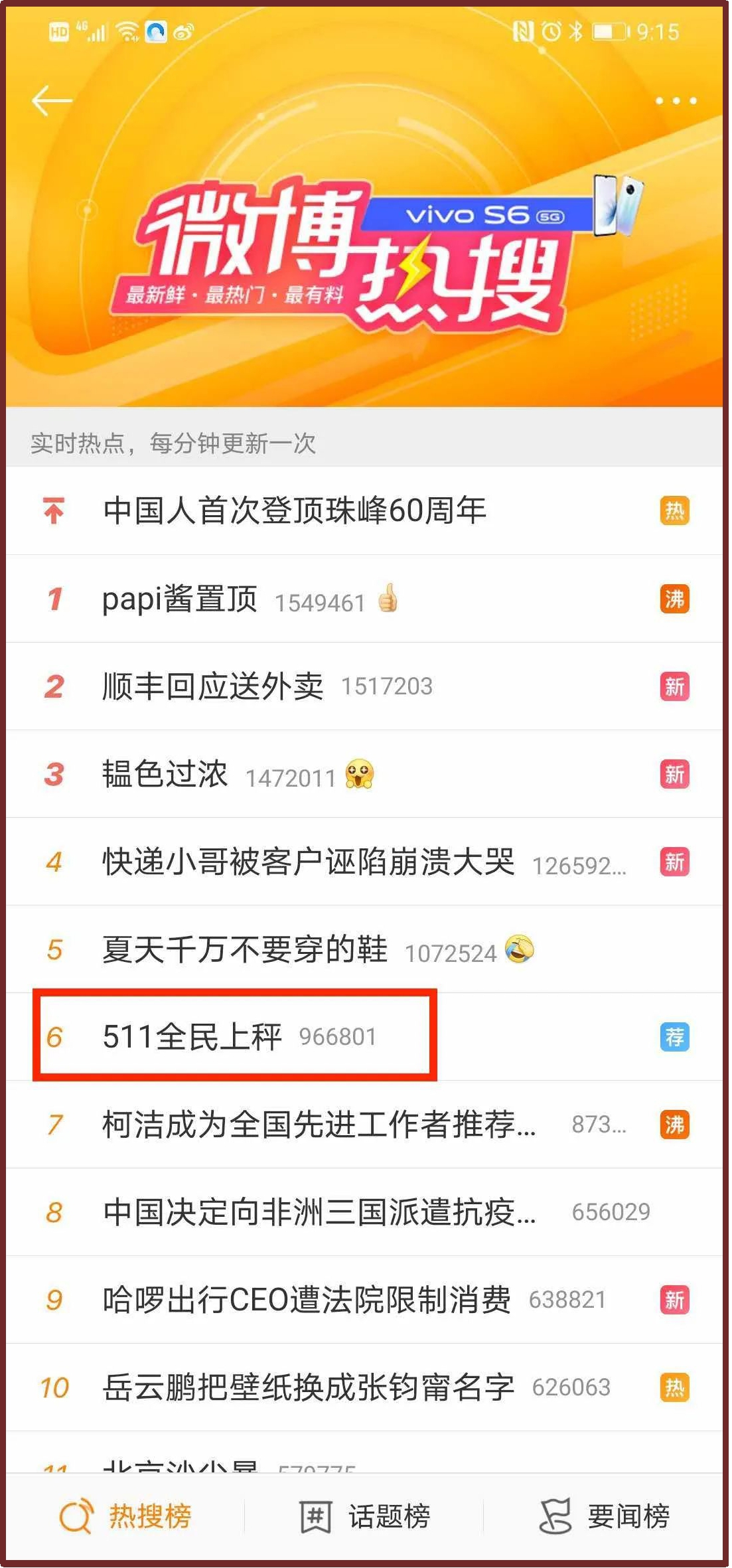 其中,#511全民上秤#话题话题10-11日连续两天实时热搜榜位居第6,阅读人数高达1.6亿,讨论人数达96w+。